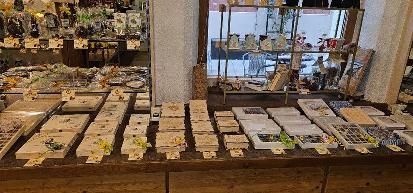 Liebevolle handgemachte Korkartikel, Schokolade, Pralinen, Gebäcke, Cookies, Lebkuchen und Holzartikel