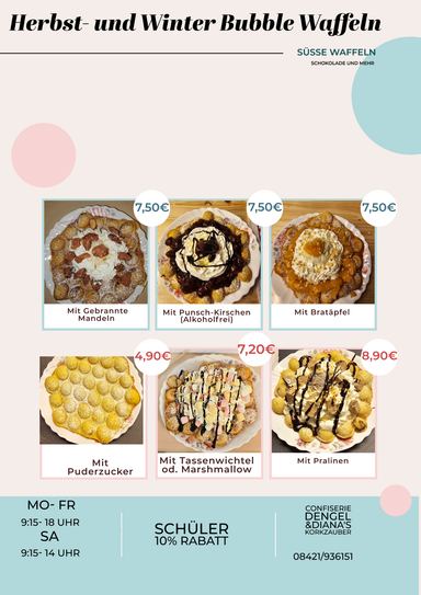 Natürlich kann man bei uns auch eine selbstgemachte Bubble Waffel aus Dinkelmehl genießen und dazu ein heißer Kaffee oder Schokolade.